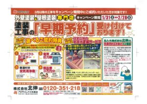 今後も塗料材料、人件費の値上がりが予想されております。早期ご契約いただきますと【春の値上げ前の価格で塗料材料、人材の確保ができる】というメリットもございます。